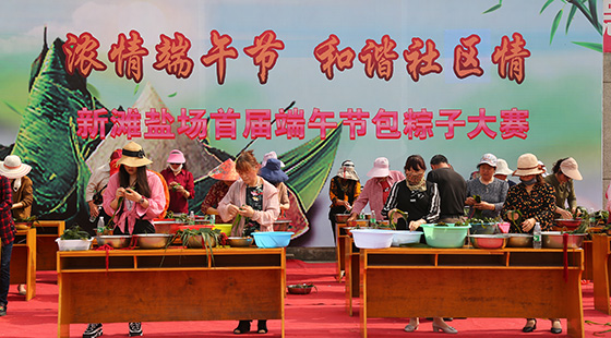 6月3日,新灘鹽場舉辦“濃情端午節(jié) 和諧社區(qū)情”首屆端午節(jié)包粽子大賽,喜迎端午節(jié)來臨?! 轫樌呐e行首屆端午節(jié)包粽子大賽,社區(qū)的工作人員和居民小組長們,提2019-06-06