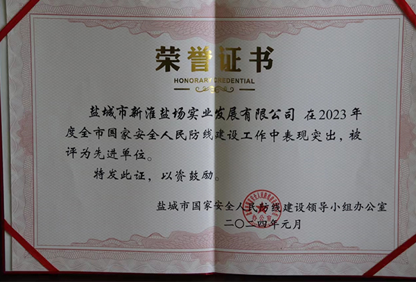 喜報!新灘鹽場榮獲“鹽城市2023年度國家安全人民防線 建設(shè)先進(jìn)單位”榮譽稱號