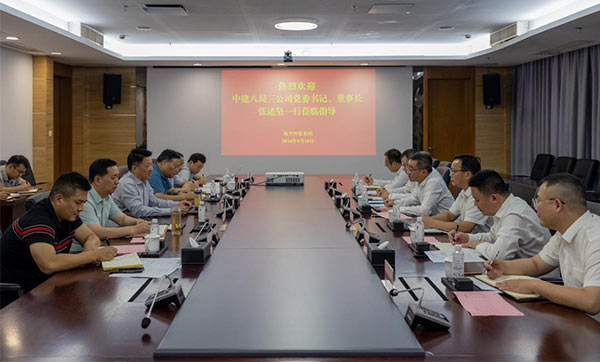 中建八局三公司黨委書記、董事長(zhǎng)張述堅(jiān)一行來集團(tuán)座談交流